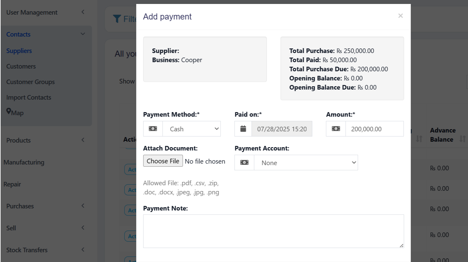 Suppose you’re shifting the data from another software to ZimozoPOS then the opening balance of the contact will be the balance amount which the contact has to pay/receive to/from you.
