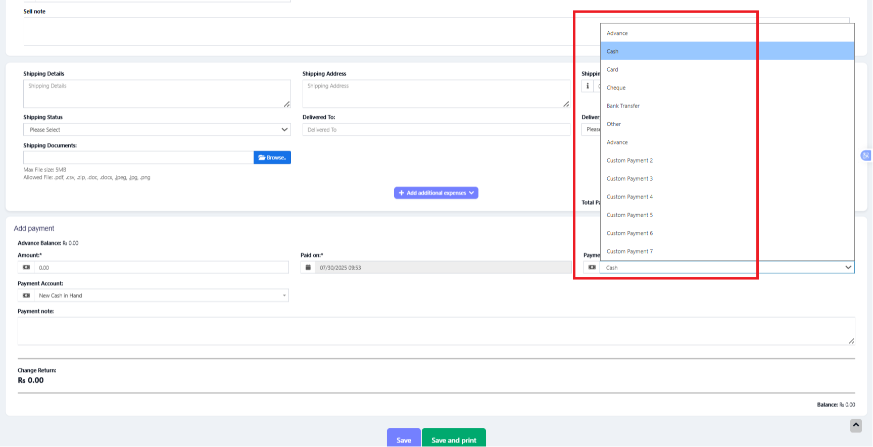 In the above screen, you can see “Pay method” or “Pay Via” options, the same option appears in POS “Multiple Pay” popup. With ZimozoPOS you can add or edit existing payment options.