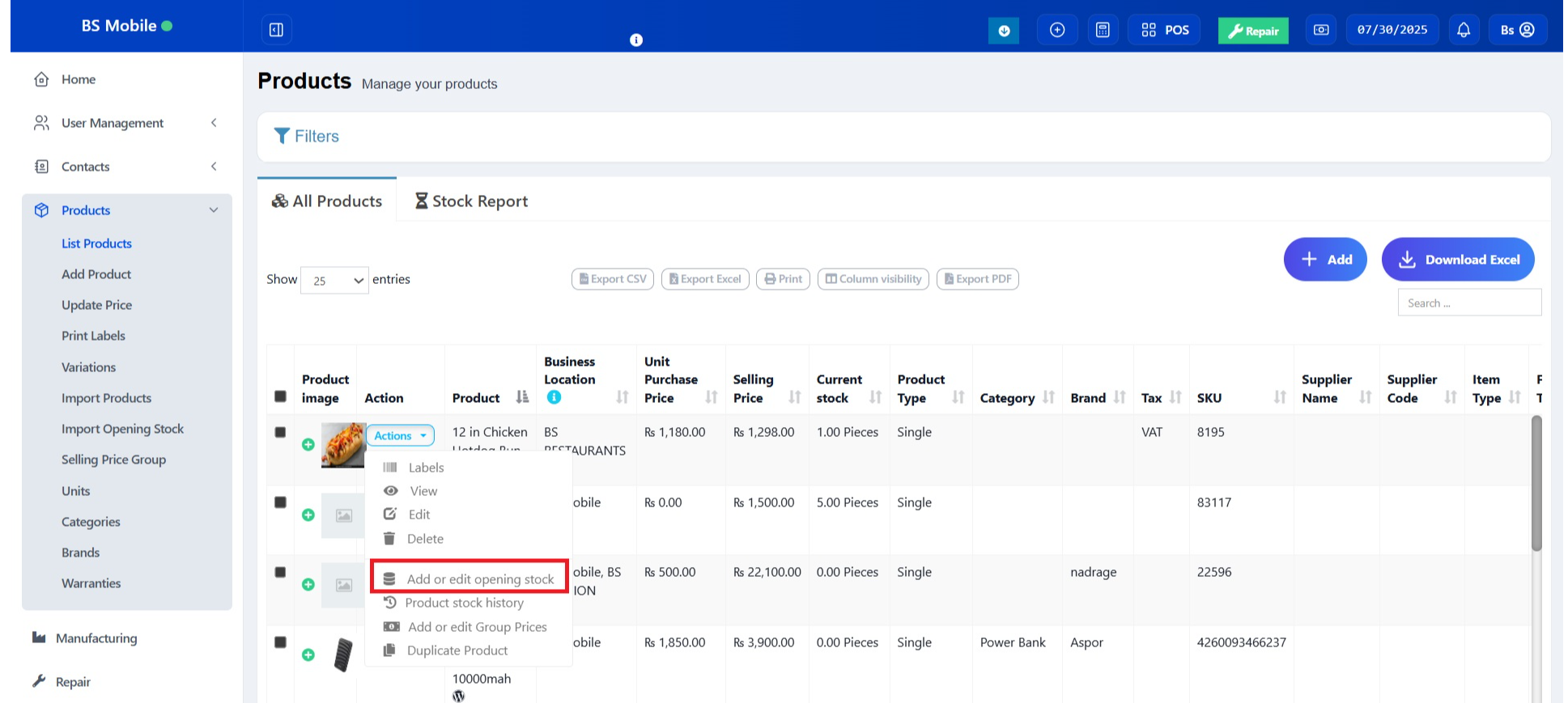 NOTE: If you have already added an opening stock and have to edit it, follow the steps below.